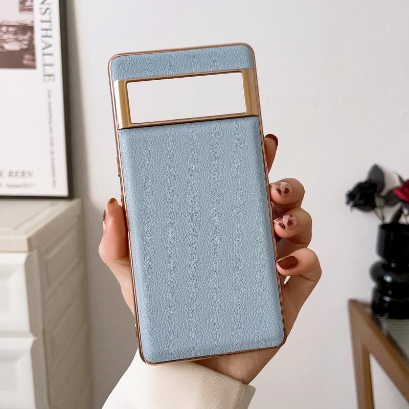 Θήκη τηλεφώνου από γνήσιο δέρμα με νανο-επίχρυση, σειρά Waves για Google Pixel 6 (Μπλε)