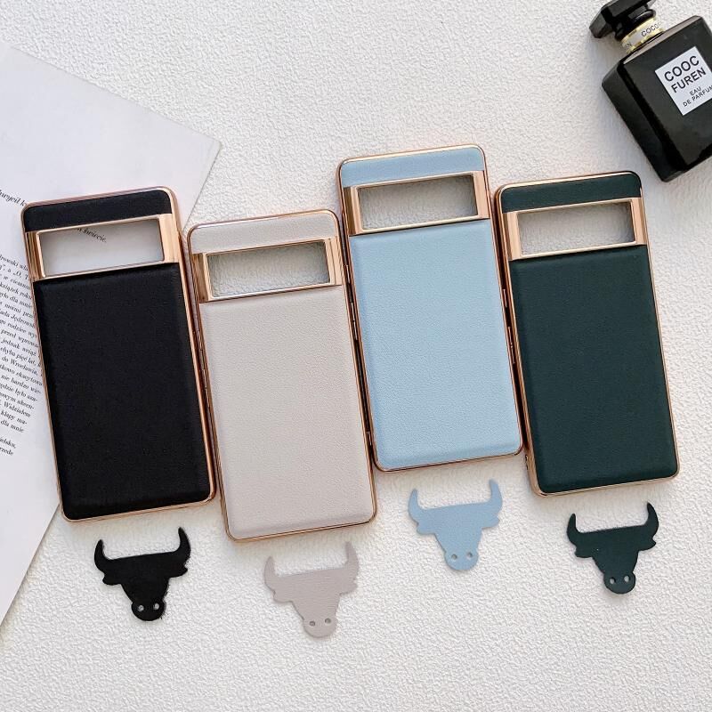 Θήκη τηλεφώνου από γνήσιο δέρμα με νανο-επίχρυση, σειρά Waves για Google Pixel 6 (Μπλε)