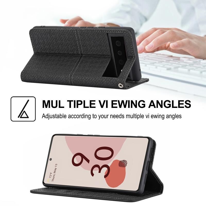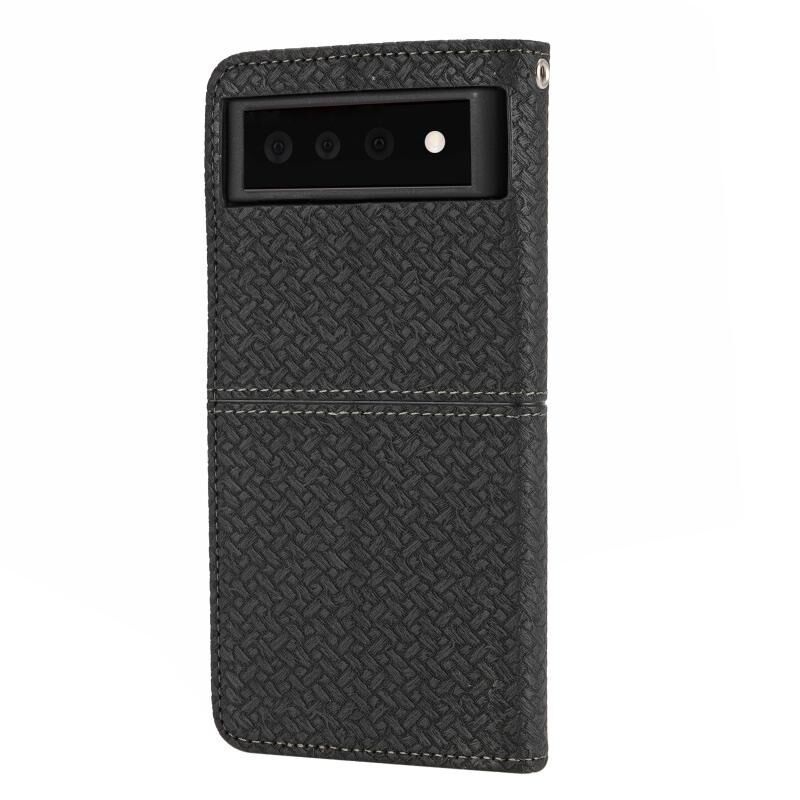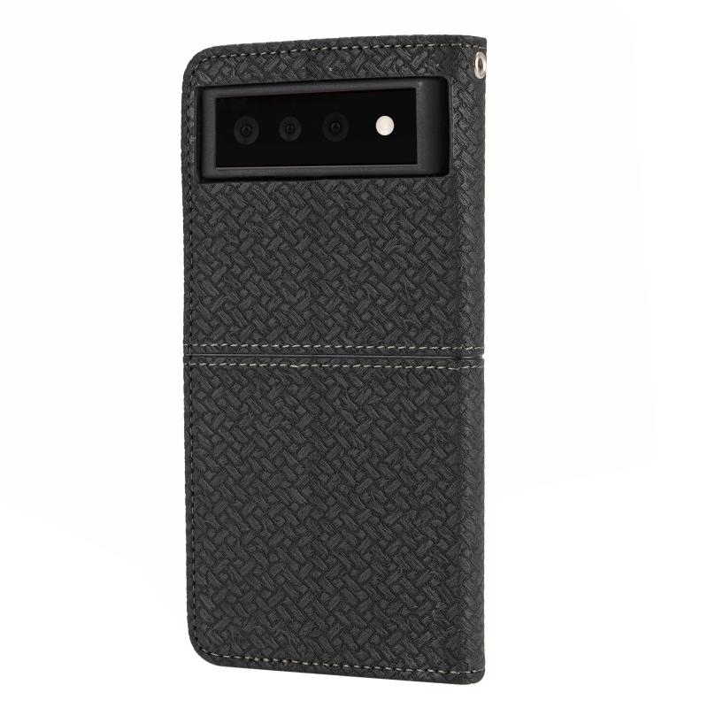 For Google Pixel 6 Woven Texture Stitching Magnetic Horizontal Flip PU Leather Case with Holder & Card Slots & Wallet & Lanyard(Black)
