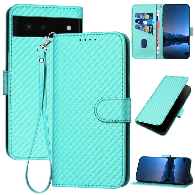 For Google Pixel 6 YX0070 Carbon Fiber Buckle Leather Phone Case with Lanyard(Light Blue)