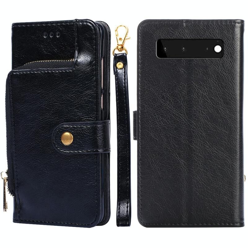 Για το Google Pixel 6 φερμουάρ τσάντα οριζόντια Flip δερμάτινη θήκη τηλεφώνου με θήκη & υποδοχές για κάρτες & κορδόνι (μαύρο)