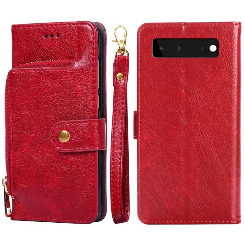 Για το Google Pixel 6 φερμουάρ τσάντα οριζόντια Flip δερμάτινη θήκη τηλεφώνου με θήκη & υποδοχές για κάρτες & κορδόνι (κόκκινο)