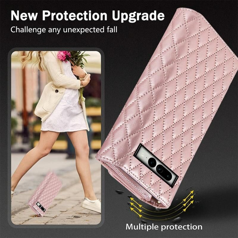 Για το Google Pixel 6 φερμουάρ πορτοφόλι πολλαπλών καρτών ρομβοειδής δερμάτινη θήκη τηλεφώνου (ροζ χρυσό)