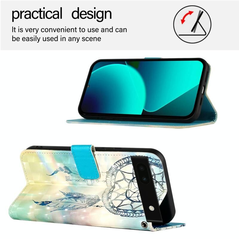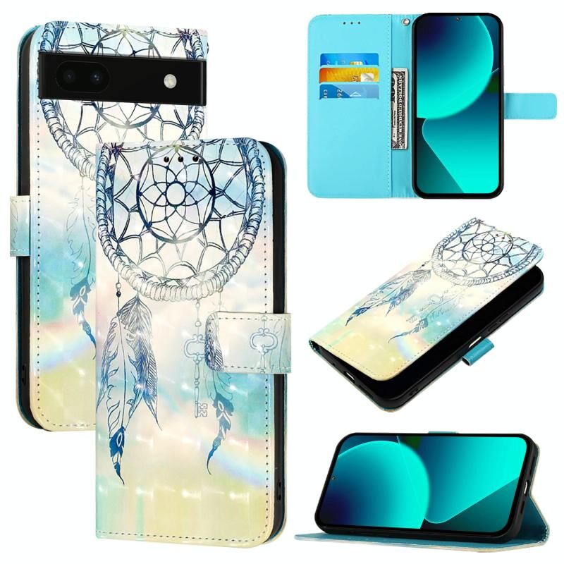 Θήκη τηλεφώνου από δέρμα με οριζόντια αναδίπλωση και τρισδιάστατη ζωγραφική για Google Pixel 6a (Όνειρο Αιολικών Κουδουνιών)