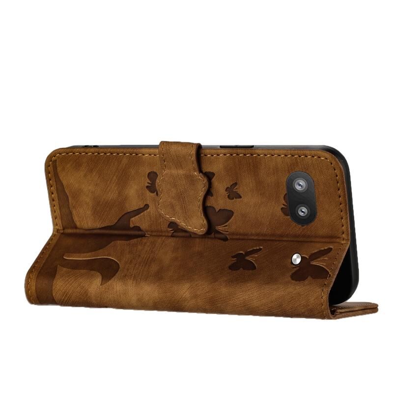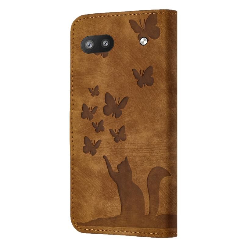 Θήκη τηλεφώνου από δέρμα με ανάγλυφο σχέδιο πεταλούδας και γάτας για Google Pixel 6a (Μωβ)
