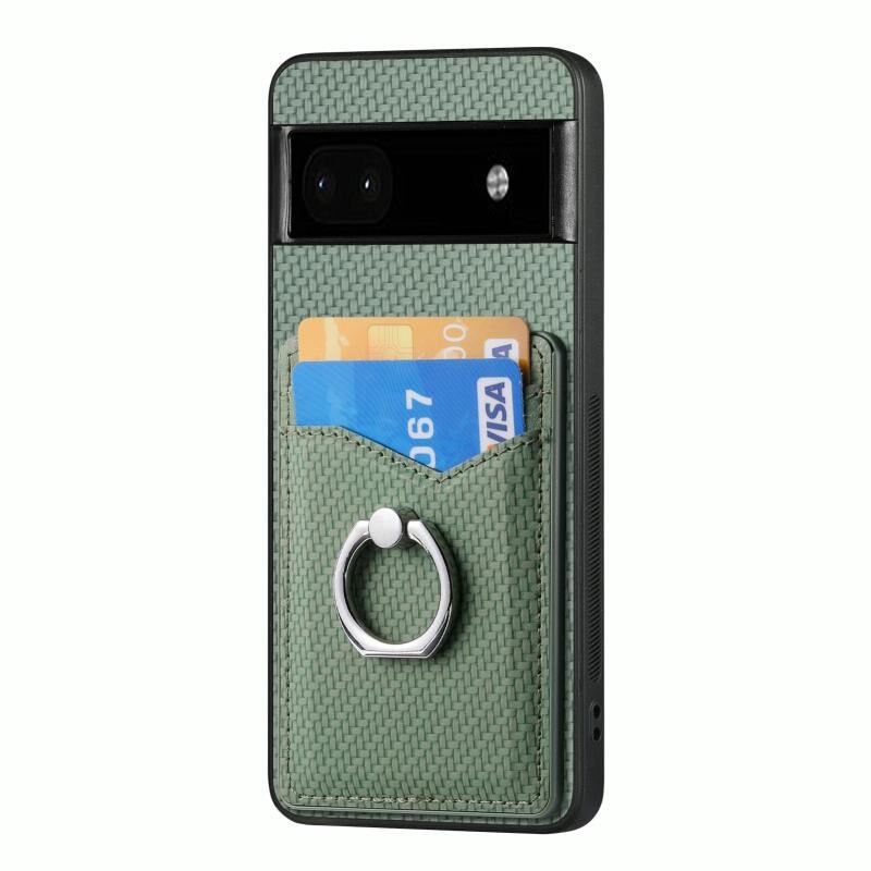 Θήκη τηλεφώνου για Google Pixel 6A από ανθρακονήματα με κάρτες και δακτύλιο στήριξης (Μαύρο)