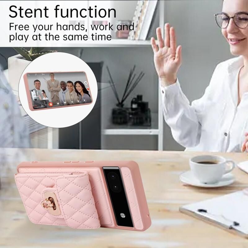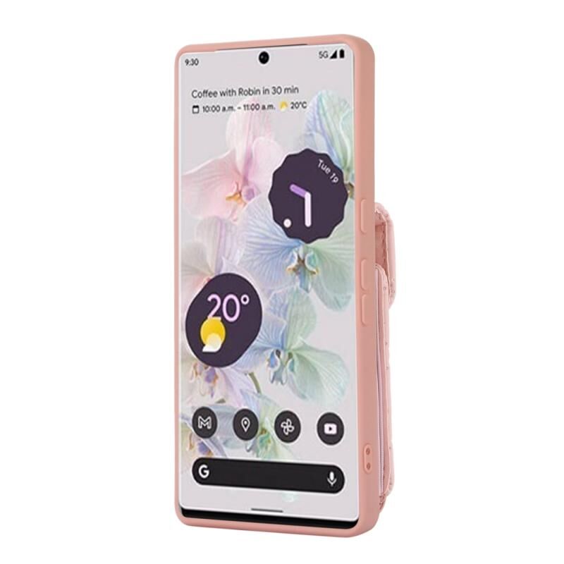 Για Google Pixel 6a Υποδοχή κάρτας δερμάτινη θήκη τηλεφώνου (ροζ)