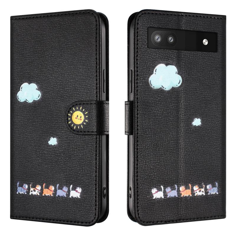 For Google Pixel 6a Cartoon Cats Leather Phone Case(Black)