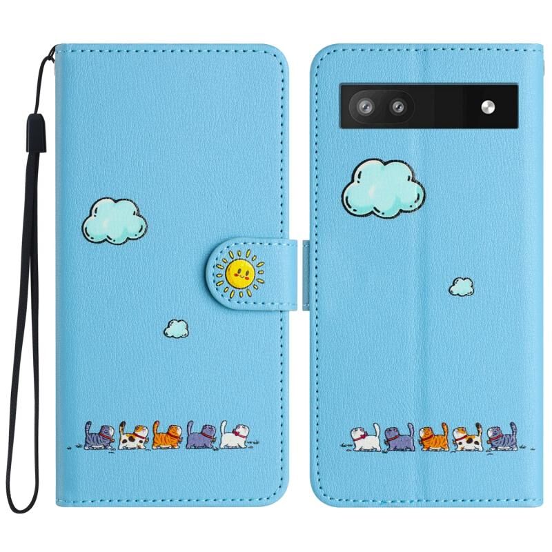 For Google Pixel 6a Cartoon Cats Leather Phone Case(Blue)