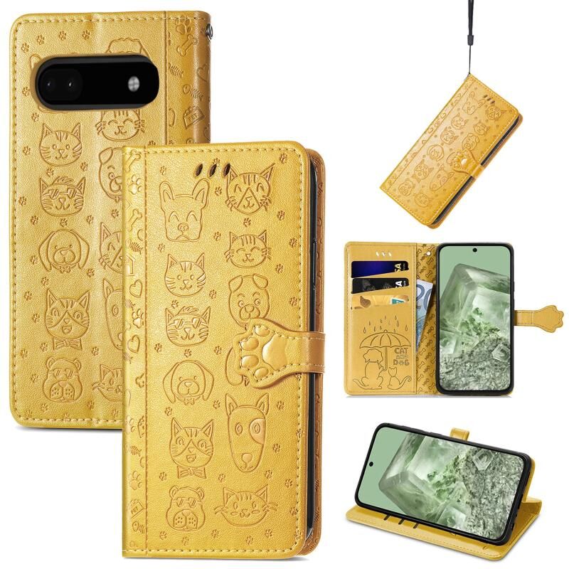 Θήκη τηλεφώνου από δέρμα με ανάγλυφο σχέδιο γάτας και σκύλου για Google Pixel 6a (Ροζ)