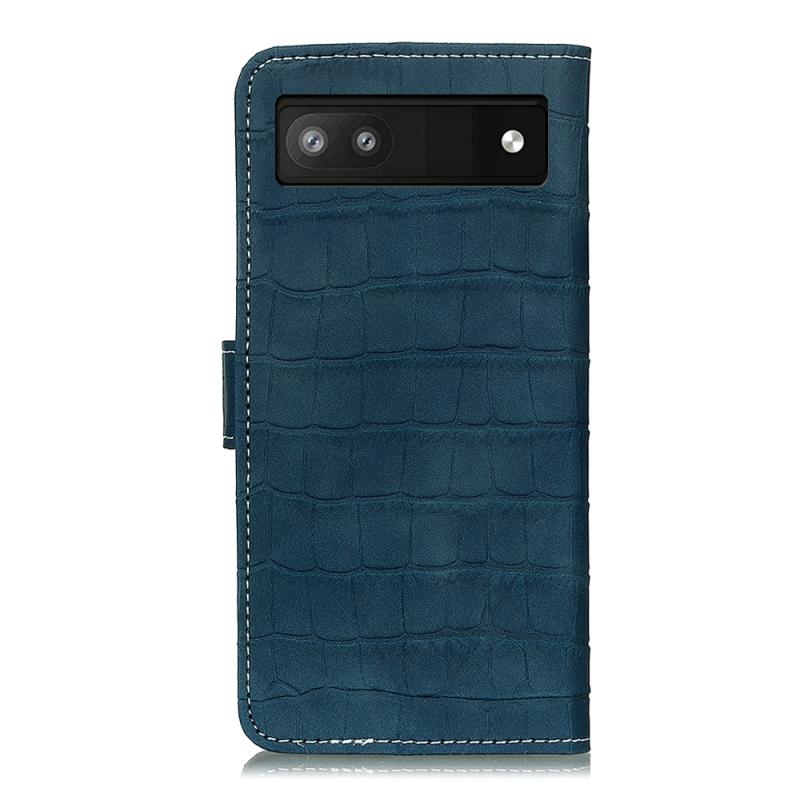 For Google Pixel 6a Crocodile Texture Flip Leather Phone Case with Holder & Card Slots(Dark Green)