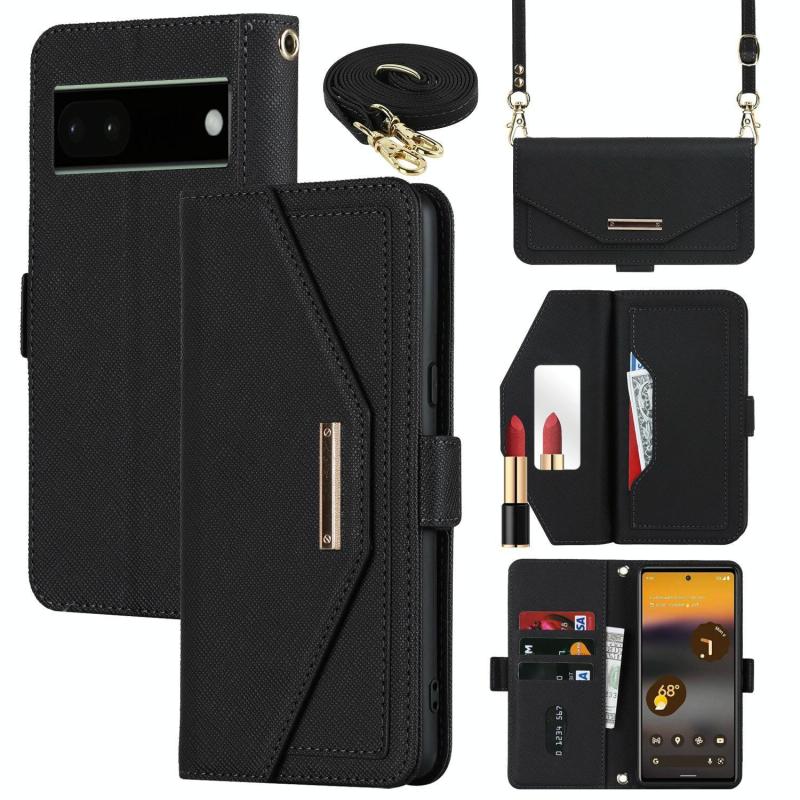 For Google Pixel 6a Cross Texture Crossbody Lanyard Leather Phone Case(Black)