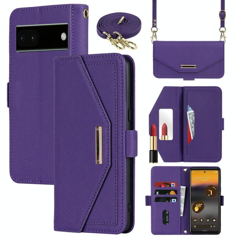 For Google Pixel 6a Cross Texture Crossbody Lanyard Leather Phone Case(Purple)