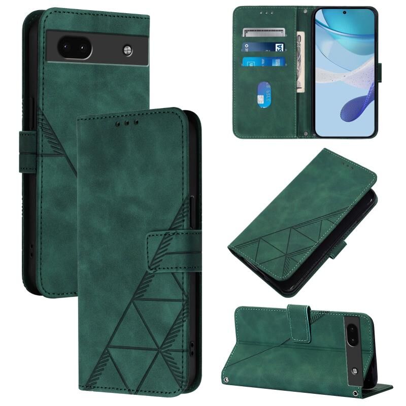 For Google Pixel 6a Crossbody 3D Embossed Flip Leather Phone Case(Dark Green)