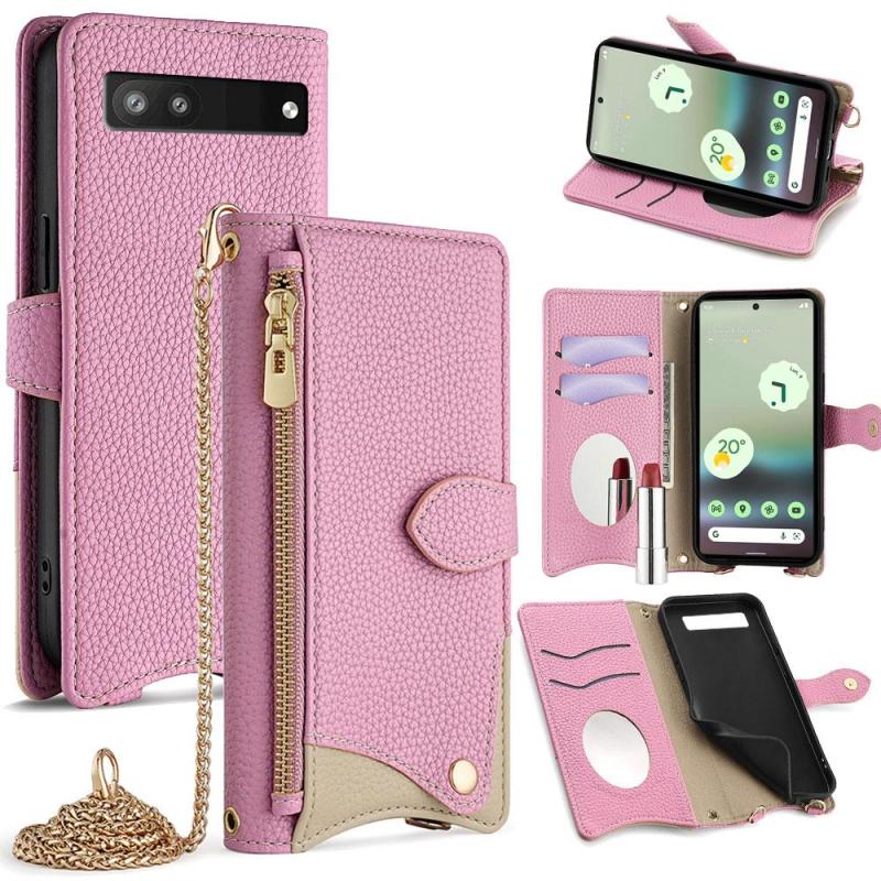 For Google Pixel 6a Crossbody Chain Fishtail Litchi Leather Phone Case(Pink)