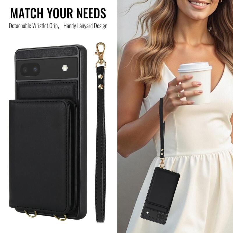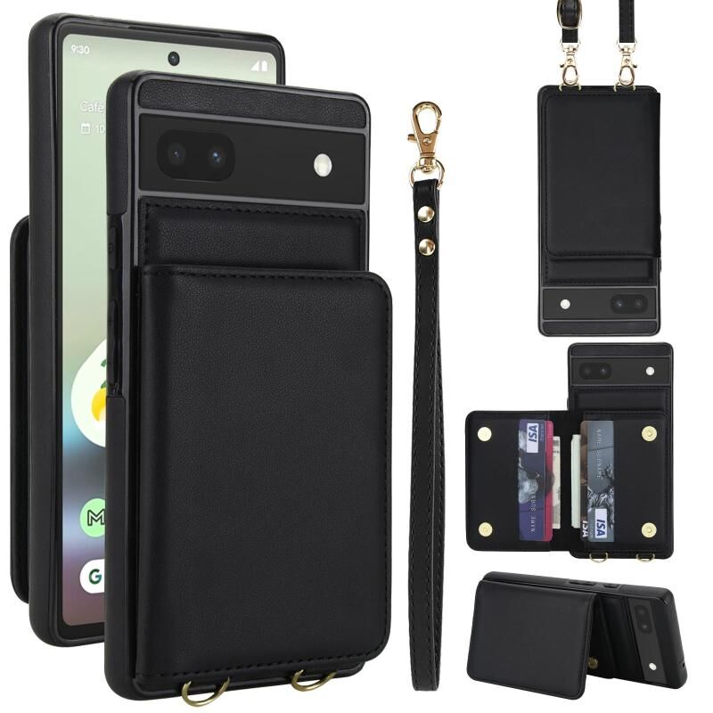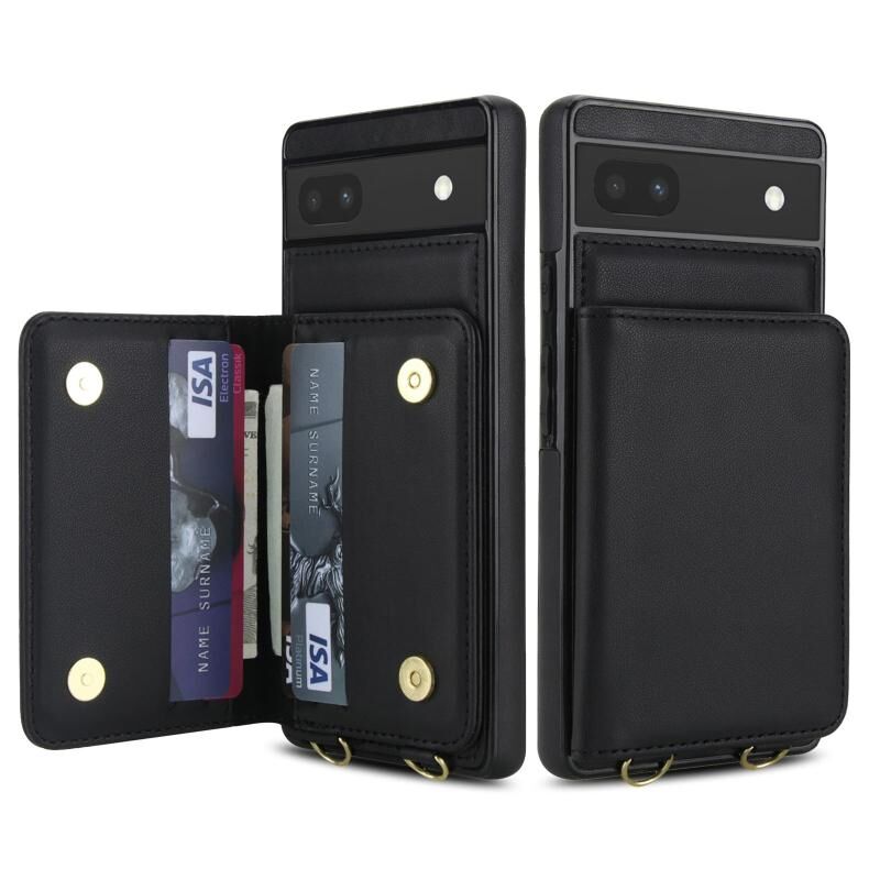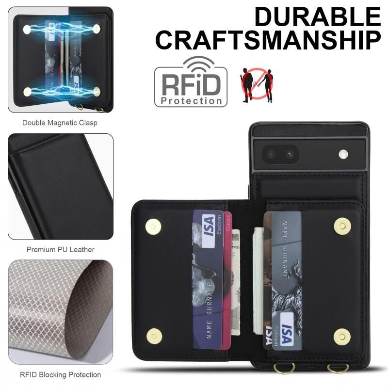 For Google Pixel 6a Crossbody Dual-buckle Wallet RFID Back Leather Phone Case(Black)