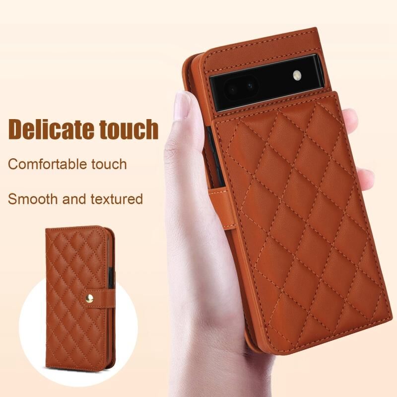 Για το Google Pixel 6a Crossbody Πολυλειτουργική θήκη τηλεφώνου από δέρμα σε σχήμα ρόμβου (καφέ)