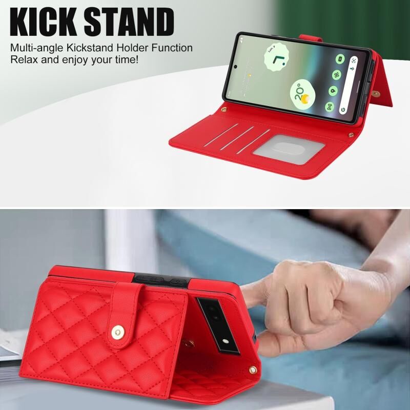 Για το Google Pixel 6a Crossbody Πολυλειτουργική θήκη τηλεφώνου από δέρμα (κόκκινο)