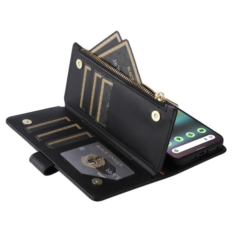 Για το Google Pixel 6a Crossbody φερμουάρ πορτοφόλι Rhombus δερμάτινη θήκη τηλεφώνου (μαύρο)