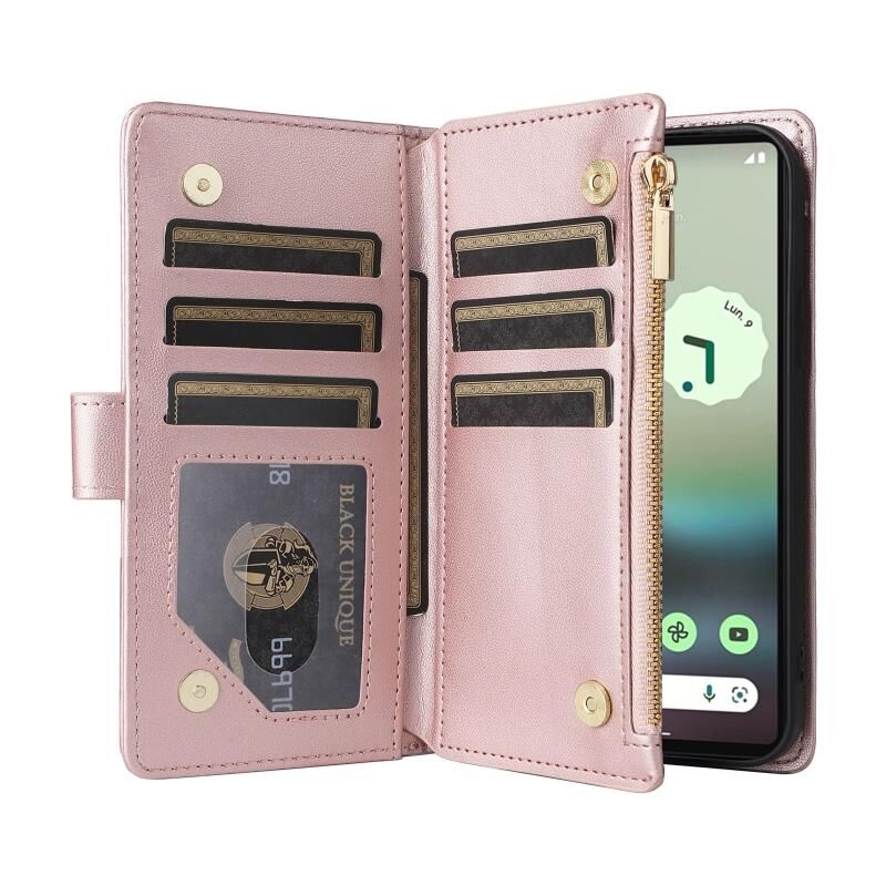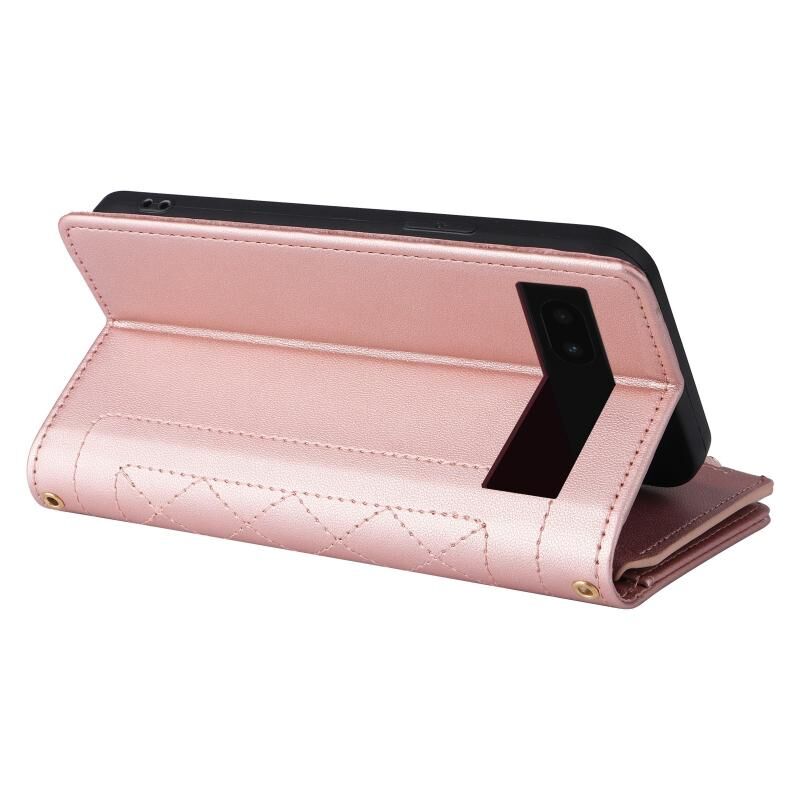 Για Google Pixel 6a Crossbody φερμουάρ πορτοφόλι ρόμβος δερμάτινη θήκη τηλεφώνου (ροζ χρυσό)