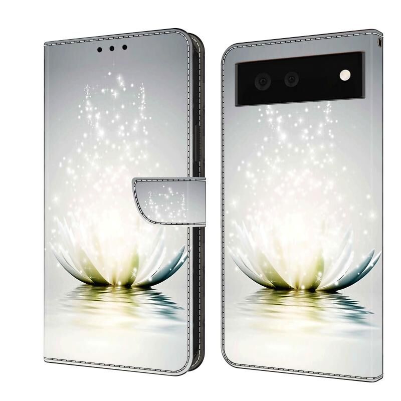 Θήκη κινητού τηλεφώνου από δέρμα, αντικραδασμική, προστατευτική 3D Crystal για Google Pixel 6a (Ανοιχτό Λωτός)