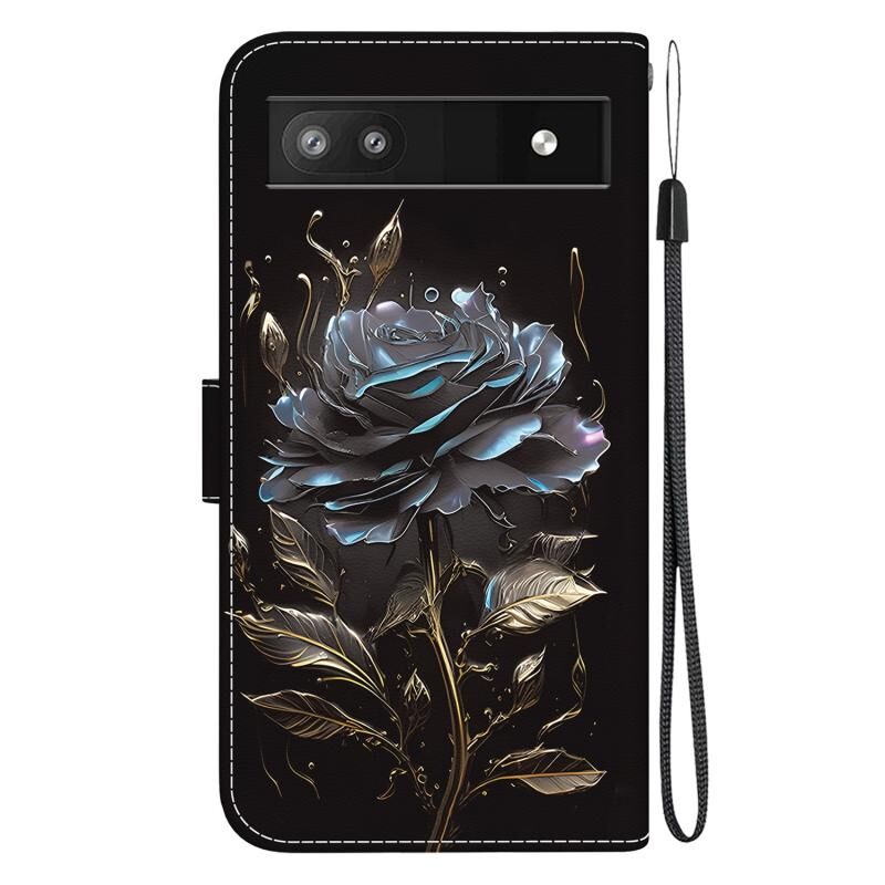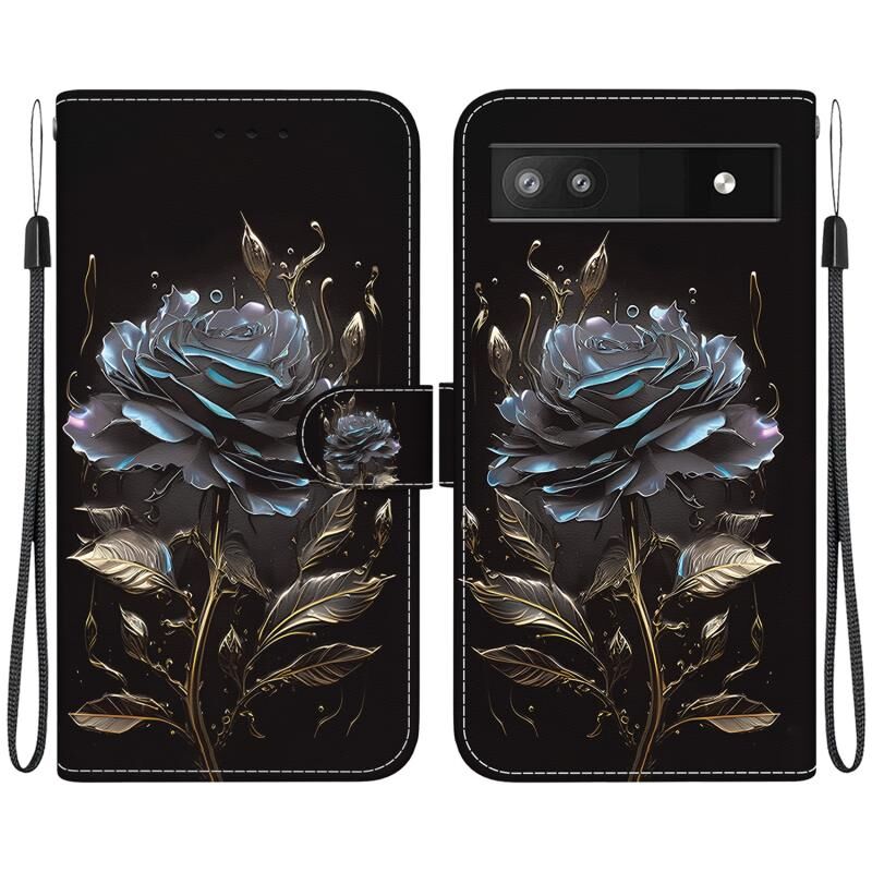 For Google Pixel 6a Crystal Texture Colored Drawing Leather Phone Case(Black Rose)