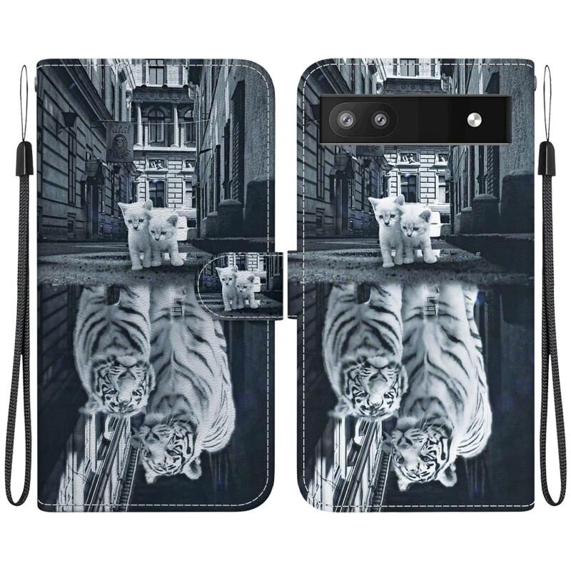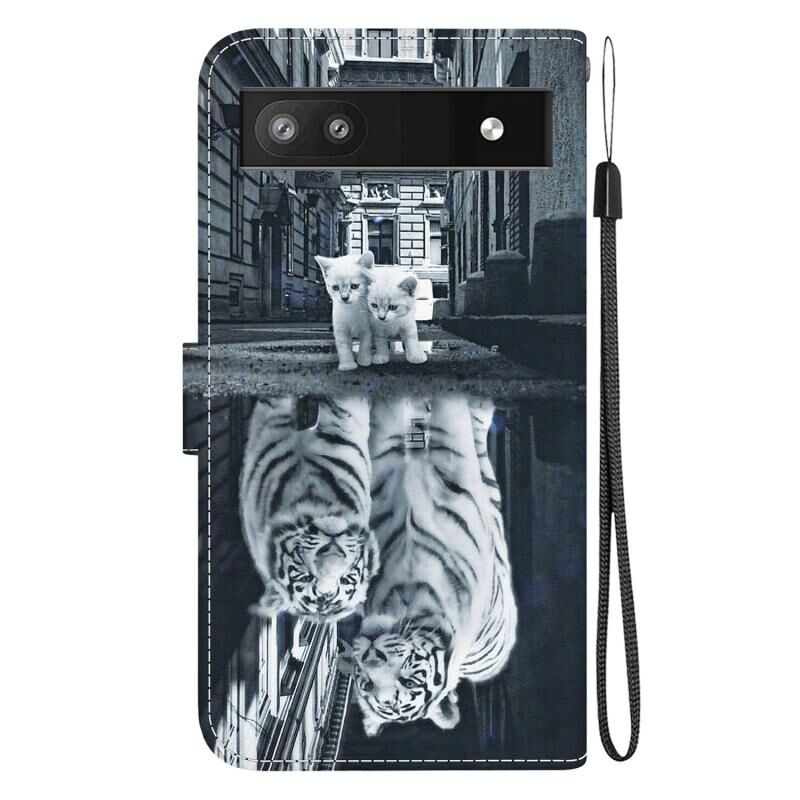 For Google Pixel 6a Crystal Texture Colored Drawing Leather Phone Case(Cat Tiger Reflection)