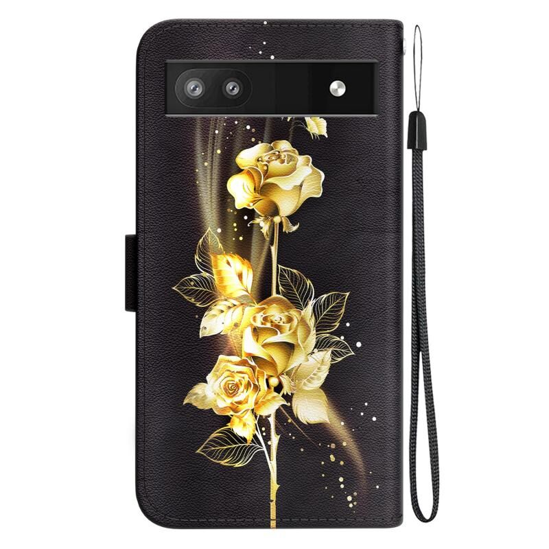 For Google Pixel 6a Crystal Texture Colored Drawing Leather Phone Case(Gold Butterfly Rose)