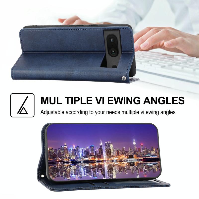 Θήκη τηλεφώνου από δέρμα με μαγνητικό κλείσιμο για Google Pixel 6a, Cubic Grid Calf Texture (Μπλε)