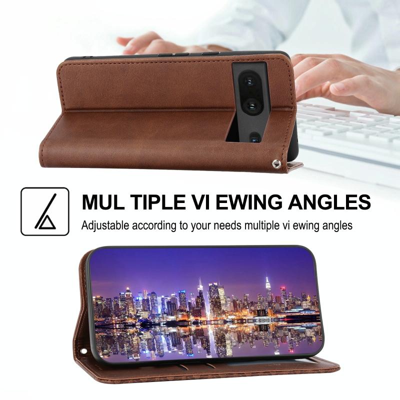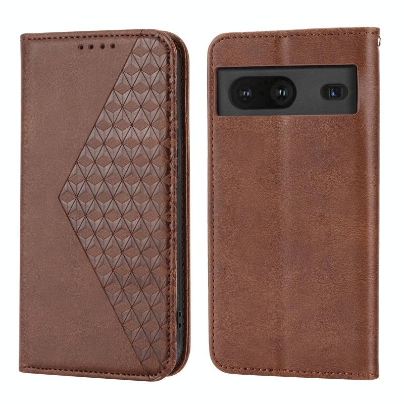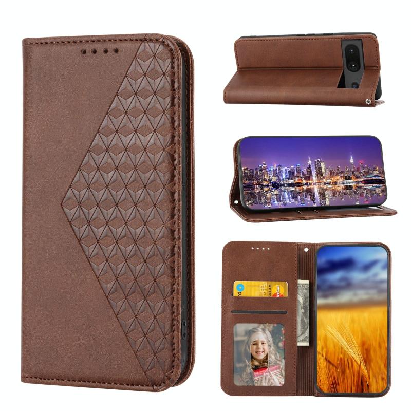 Θήκη τηλεφώνου από δέρμα με μαγνητικό κλείσιμο για Google Pixel 6a, Cubic Grid Calf Texture (Καφέ)