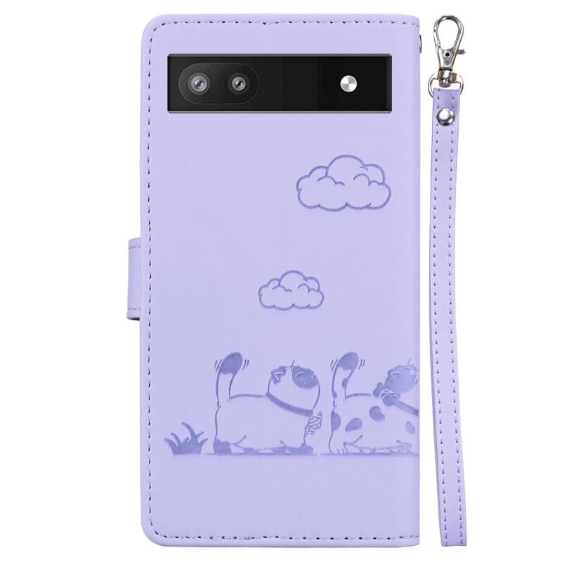 For Google Pixel 6a Cute Cats RFID Leather Phone Case(Purple)