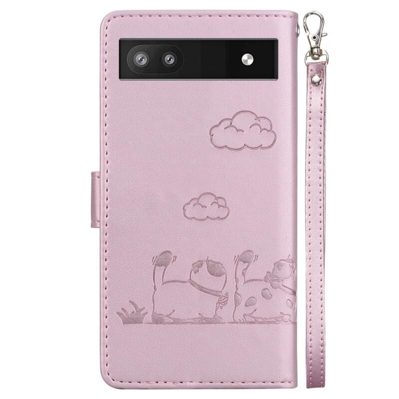For Google Pixel 6a Cute Cats RFID Leather Phone Case(Rose Gold)