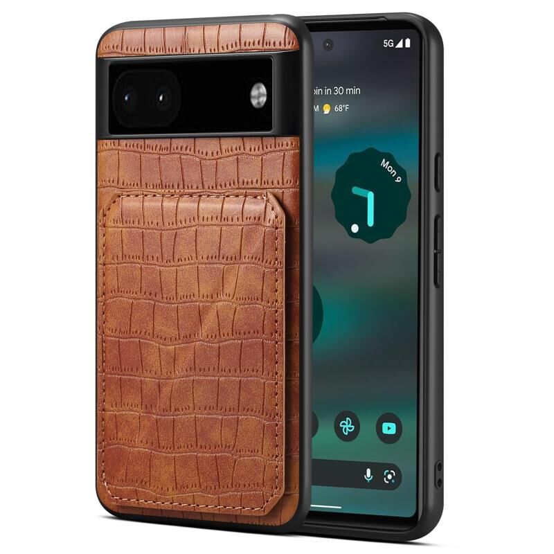 Θήκη κινητού τηλεφώνου με υφή κροκόδειλου Denior, επιμετάλλωση, για Google Pixel 6a (Καφέ) (Denior)