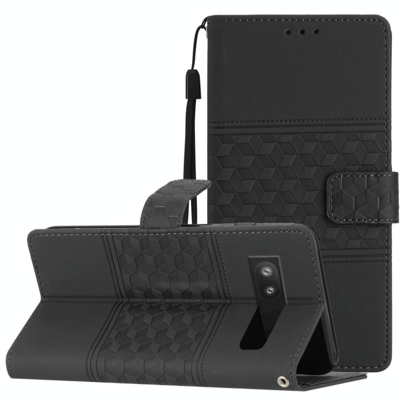 Για το Google Pixel 6a Diamond Embossed Skin Feel Leather Phone Case με κορδόνι (Μαύρο)