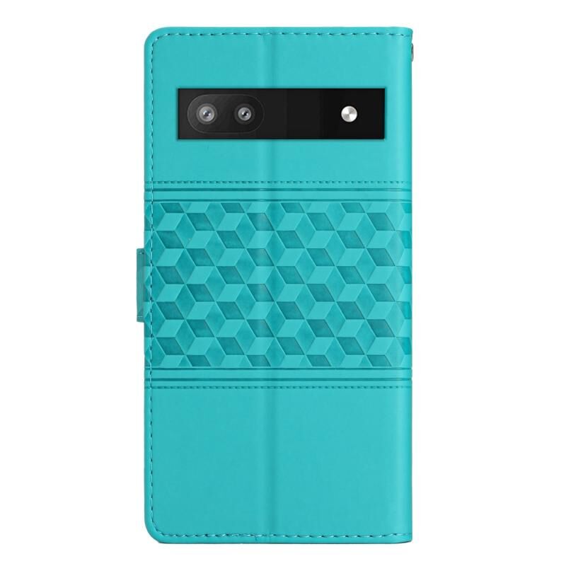 Για το Google Pixel 6a Diamond Embossed Skin Feel Leather Phone Case με κορδόνι (μπλε)