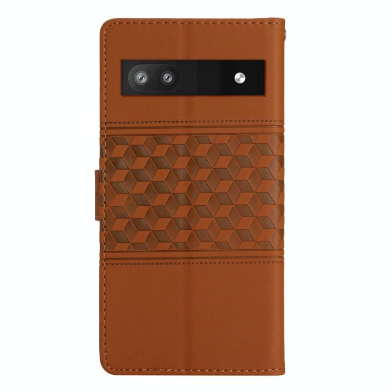 Για το Google Pixel 6a Diamond Embossed Skin Feel Leather Phone Case με κορδόνι (καφέ)