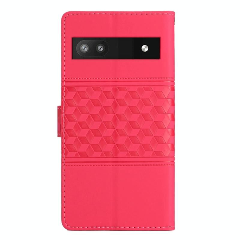 Για το Google Pixel 6a Diamond Embossed Skin Feel Leather Phone Case με κορδόνι (κόκκινο)