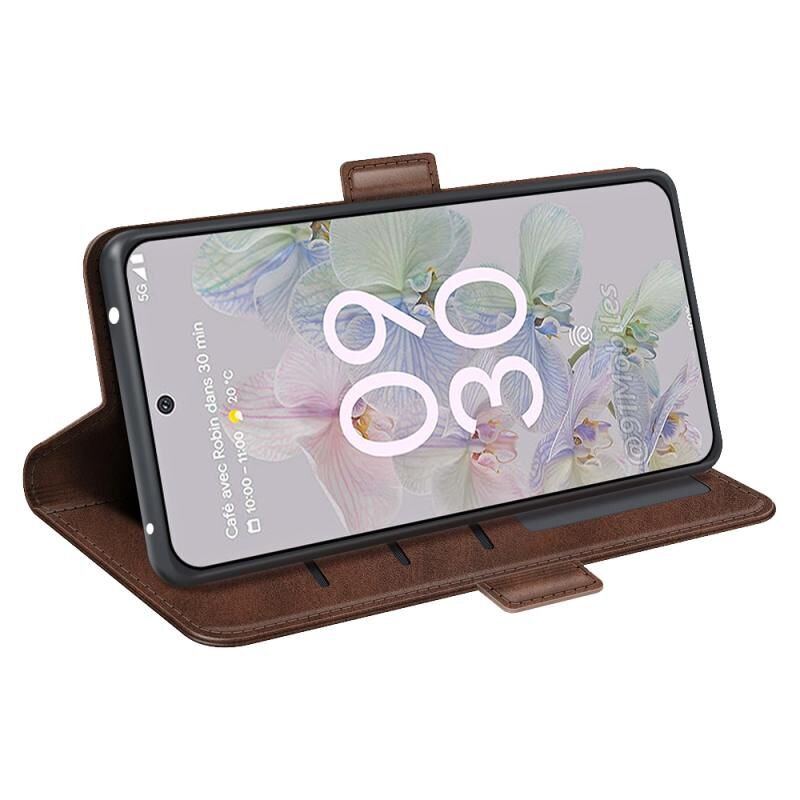 Για το Google Pixel 6a Μαγνητική θήκη τηλεφώνου διπλής όψης με δερμάτινη αγκράφα (καφέ)