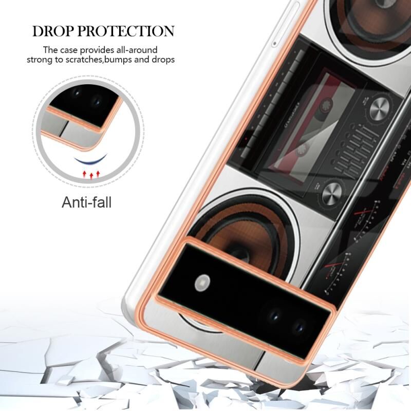 Θήκη τηλεφώνου για Google Pixel 6a με ηλεκτρολυτική επιμετάλλωση, διπλής όψης IMD (Ρετρό Ραδιόφωνο)