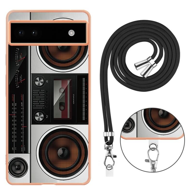 Θήκη τηλεφώνου για Google Pixel 6a με επιμετάλλωση, διπλής όψης IMD με κορδόνι (Ρετρό Ραδιόφωνο)