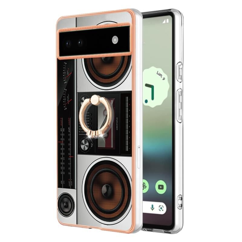 Θήκη τηλεφώνου για Google Pixel 6a με ηλεκτρολυτική επιμετάλλωση, διπλής όψης IMD με δακτύλιο στήριξης (Ρετρό Ραδιόφωνο)