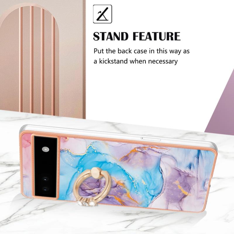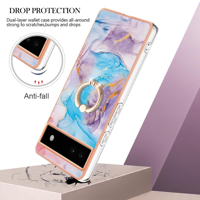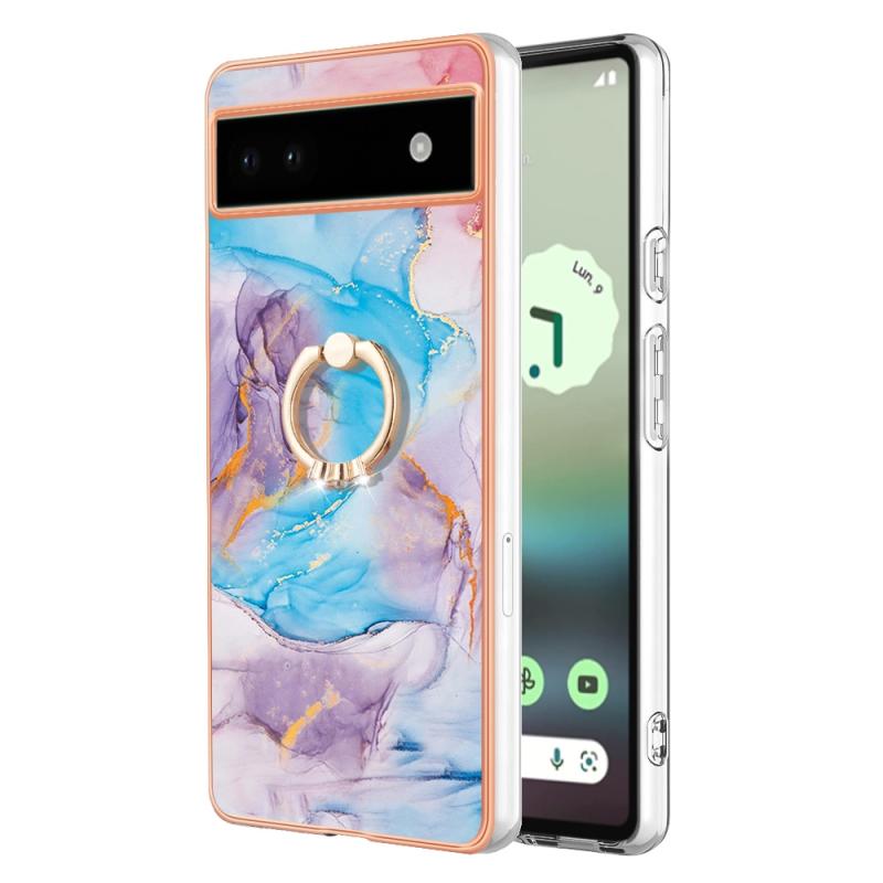 For Google Pixel 6a Electroplating IMD TPU Phone Case with Ring(Blue Marble)