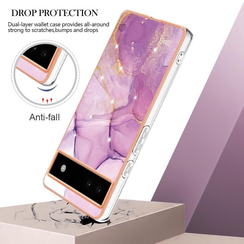 Θήκη τηλεφώνου για Google Pixel 6a με ηλεκτρολυτική μαρμάρινη επένδυση IMD διπλής όψης (Μωβ 001)