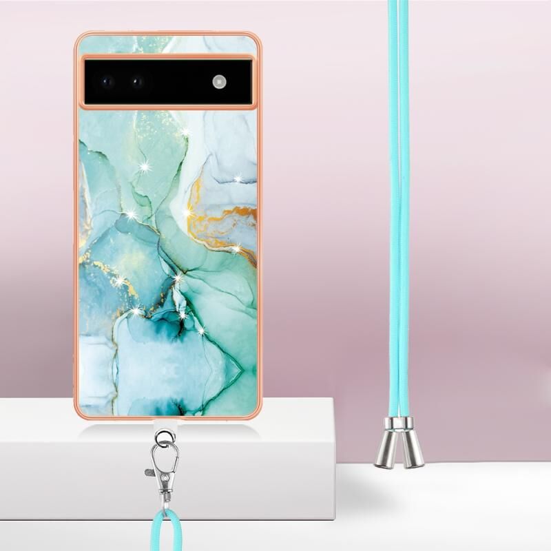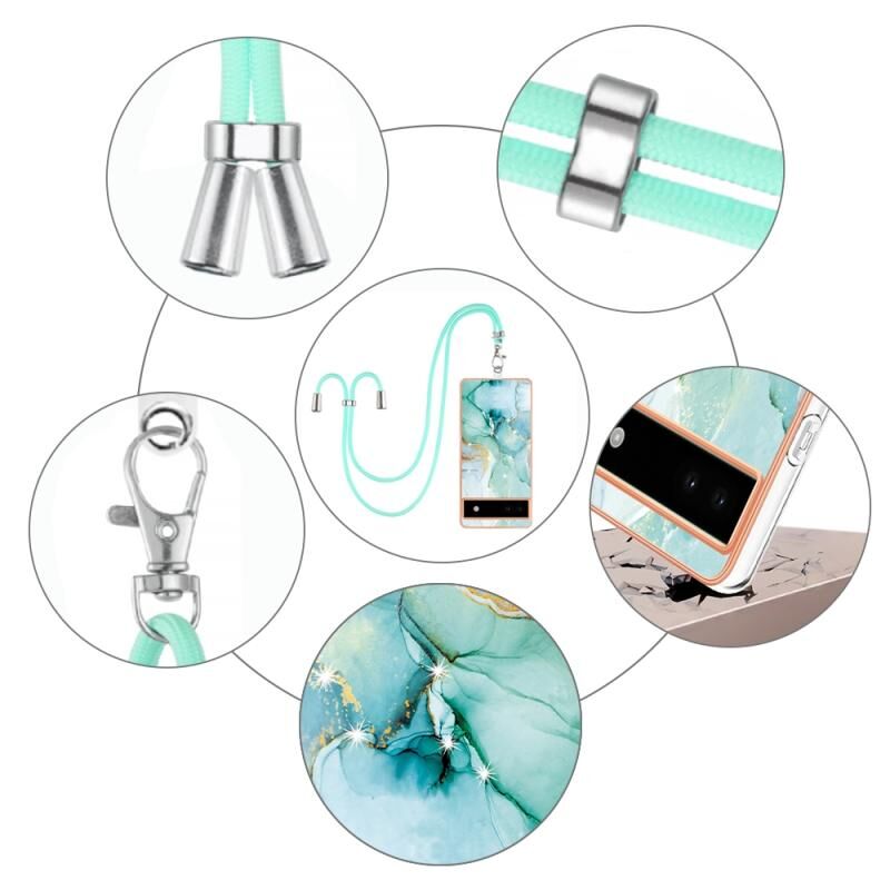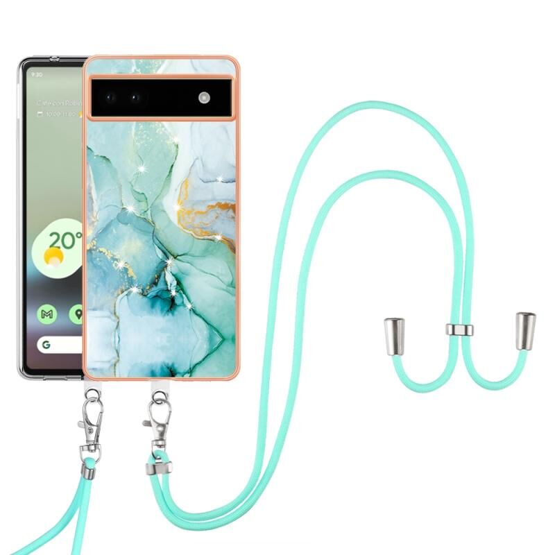 Θήκη τηλεφώνου για Google Pixel 6a με επιμετάλλωση, σχέδιο μάρμαρου, διπλής όψης IMD με κορδόνι (Μωβ 001)
