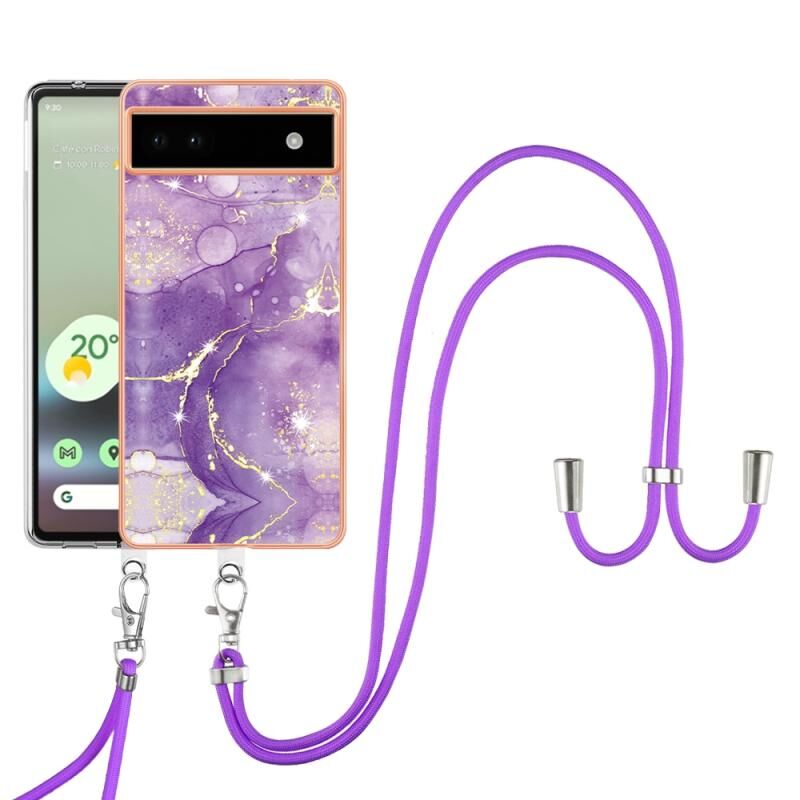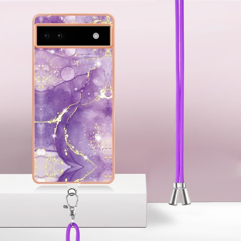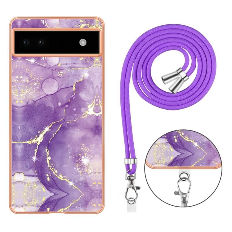 Θήκη τηλεφώνου για Google Pixel 6a με επιμετάλλωση, σχέδιο μάρμαρου, διπλής όψης IMD με κορδόνι (Μωβ 001)