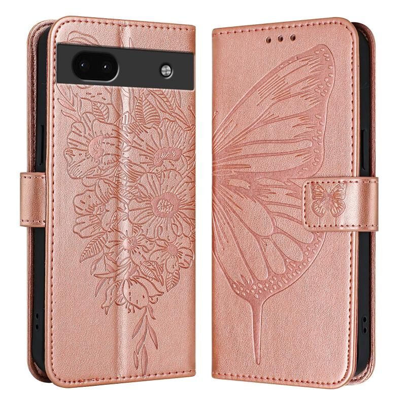 For Google Pixel 6a Embossed Butterfly Leather Phone Case(Rose Gold)
