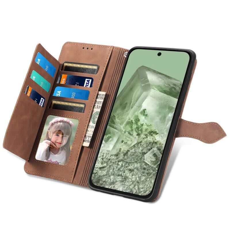 Για το Google Pixel 6a ανάγλυφο λουλούδι φερμουάρ δερμάτινη θήκη τηλεφώνου (καφέ)