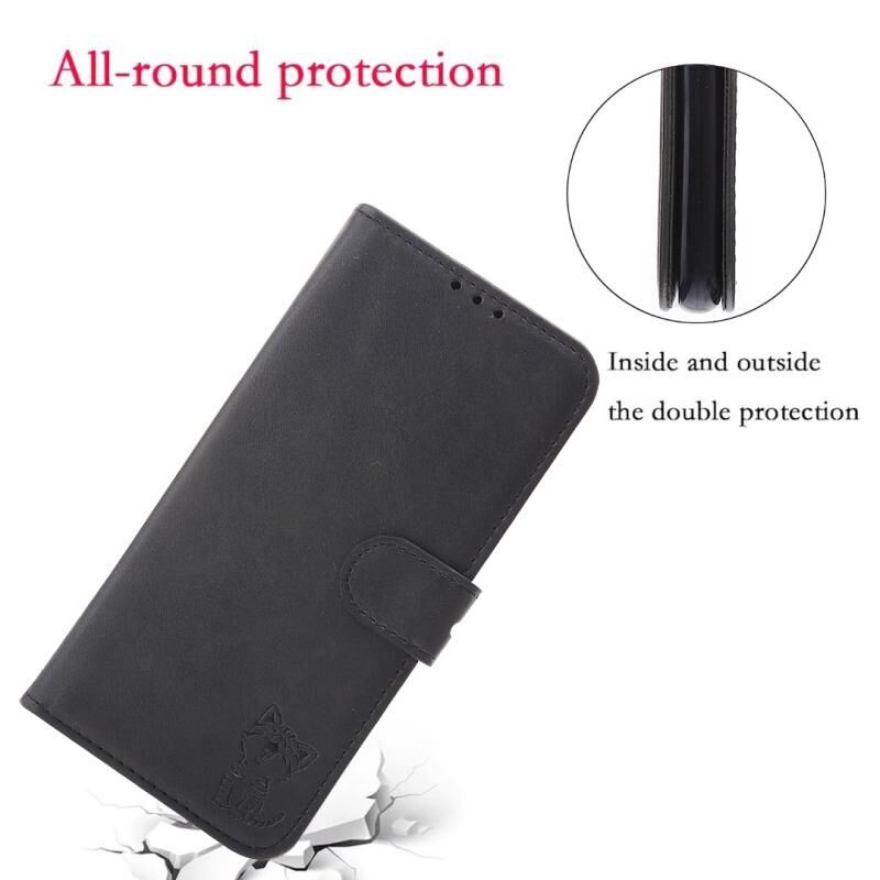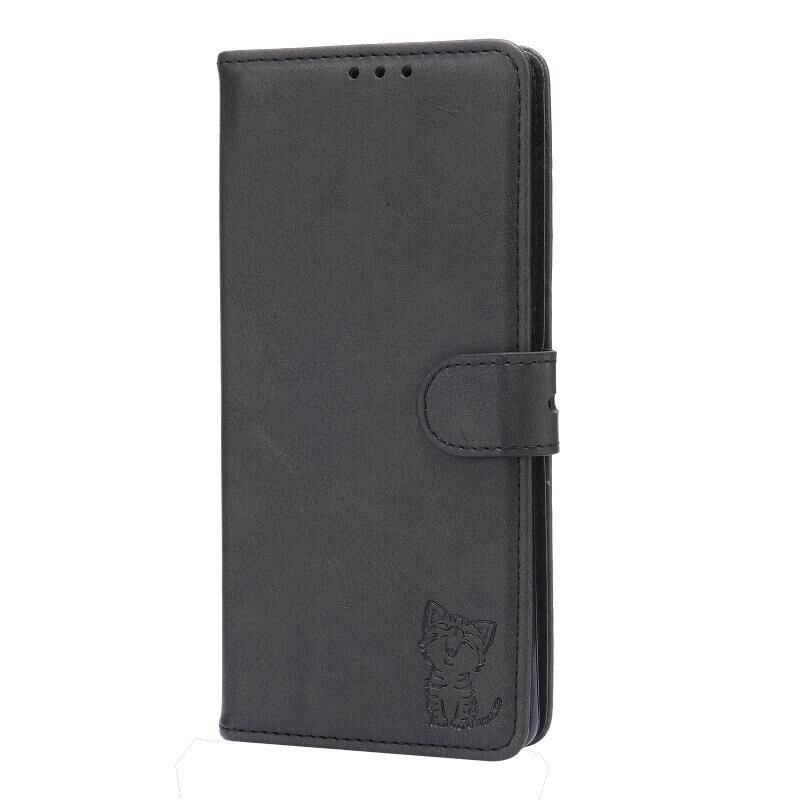 Θήκη τηλεφώνου από δέρμα με ανάγλυφο χαρούμενο σχέδιο γάτας για Google Pixel 6a (Γκρι)