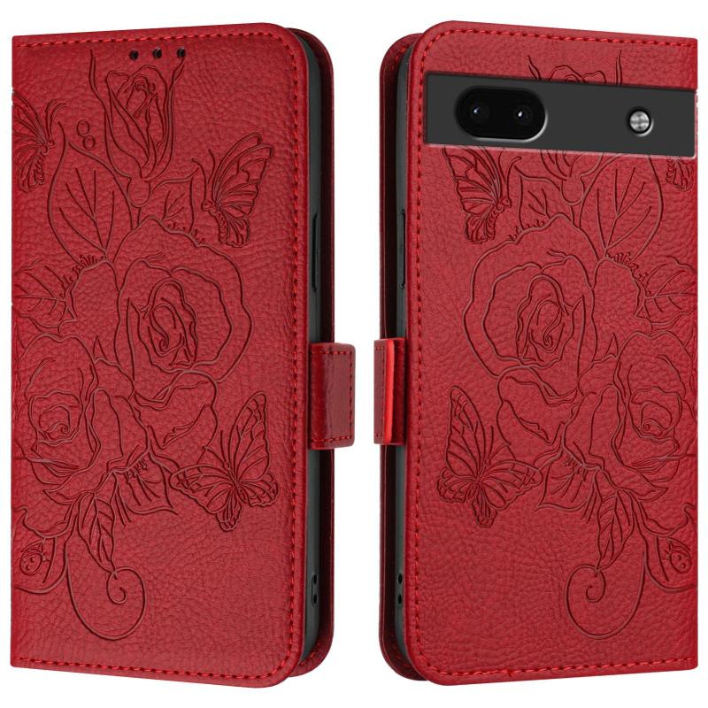 For Google Pixel 6a Embossed Rose RFID Anti-theft Leather Phone Case(Red)