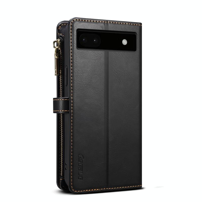 Για Google Pixel 6a Θήκη δέρματος με φερμουάρ και προστασία RFID σειράς Star ESEBLE (Μαύρο) (ESEBLE)